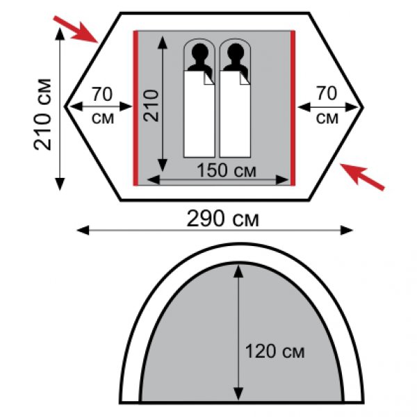 Двухместная палатка обеспечивает комфортный отдых двоим туристам. Зимой и летом она защитит от непогоды. Предусмотрена снежная и ветрозащитная юбка: они не позволят снегу и воде попасть внутрь палатки. Штормовые и светоотражающие оттяжки помогут противостоять порывам ветра. Усиленные влагоотталкивающие свойства дна защитят Вас от промокания.