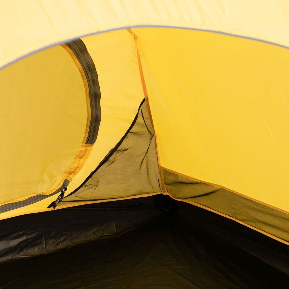 TRAMP MOUNTAIN 2 (V2), двухместная палатка для использования в различных, в том числе и сложных, погодных условиях. Практичность и комфорт для любителей путешествий и отдыха на природе обеспечивает продуманная конструкция палатки и материал, используемый для внешнего и внутреннего покрытия. Форма конструкции и внешнее покрытие из полиэстера обеспечивают надёжную защиту от проникновения ветра и влаги. Дополнительная пропитка водоотталкивающим составов, устойчивым к смыванию, ещё больше повышает защиту внутренней части. Швы проклеены термоусадочной лентой. Дышащая поверхность внутреннего полотна палатки препятствует образованию и скапливанию на стенках и вещах влажного конденсата. Дополнительный комфорт создаётся за счёт вентиляционных окон, и возможности держать двери приоткрытыми. Двери и окна имеют дополнительную защиту от проникновения насекомых (противомоскитная сетка).