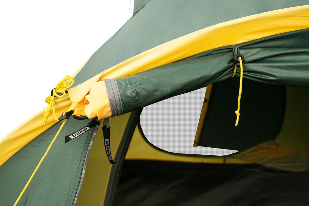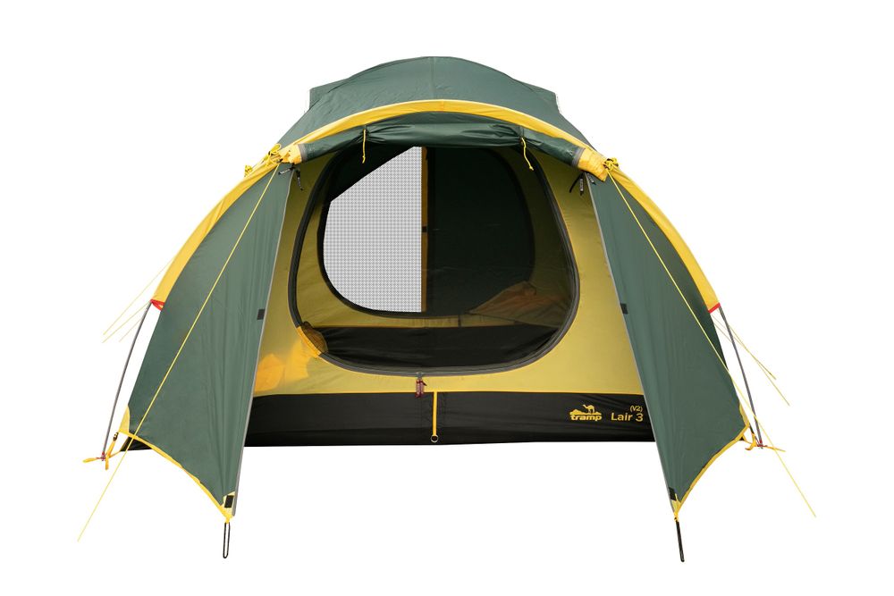 Палатка TRAMP LAIR 3 (V2) - является туристической походной моделью. Подходит для установки лагеря: весной, летом и осенью. Данная продукция пользуется большим спросом и популярностью среди поклонников пеших походов и велосипедных путешествий. Также очень известна среди мотоциклистов и охотников. Палатка с двумя входами, штатно рассчитана на 3-и особы. В наличии присутствуют стальные колышки, с расчетом на всю палатку и на штормовые растяжки. Конструкция полу образная, удерживается благодаря внутреннему фиберглассовому каркасу из трех дуг диметром 8.5 мм.