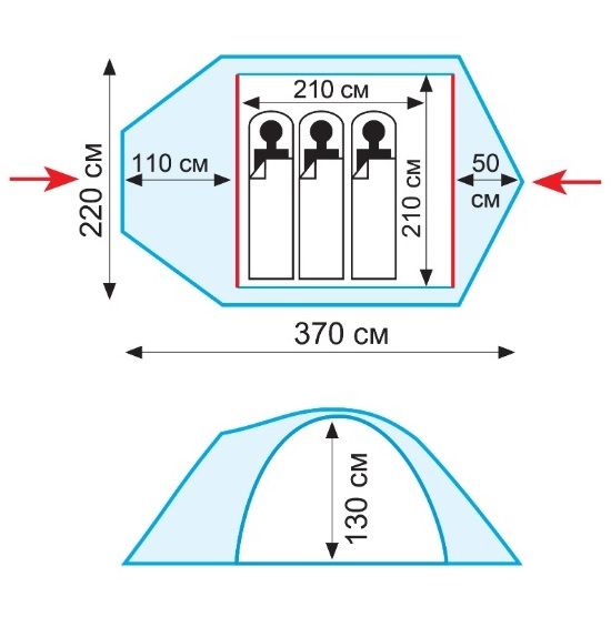 | Ткань тента | 100% Полиэстер 75D/190T RipStop 6000 мм в ст |
