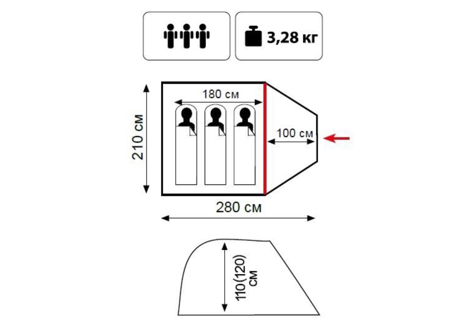 Тент: 100% полиестер 75D/190T WR PU 4000 мм. в. ст.