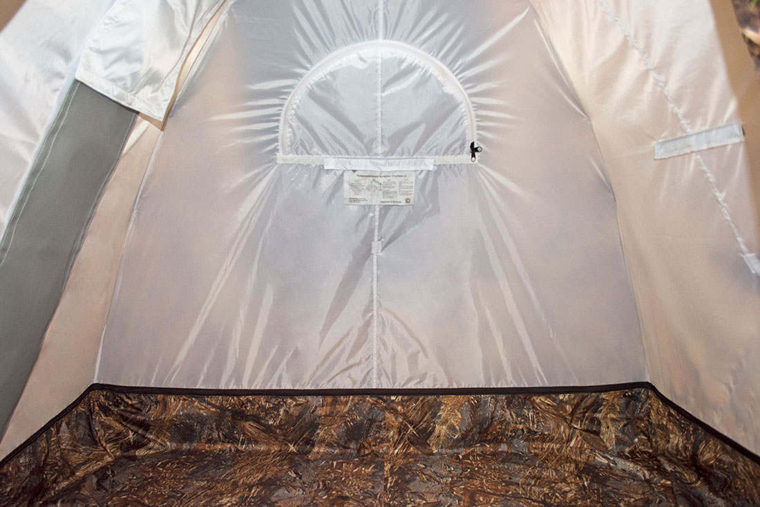 Палатка предназначена для всесезонной эксплуатации. Рассчитана на размещение трех человек (без печи и раскладушек).