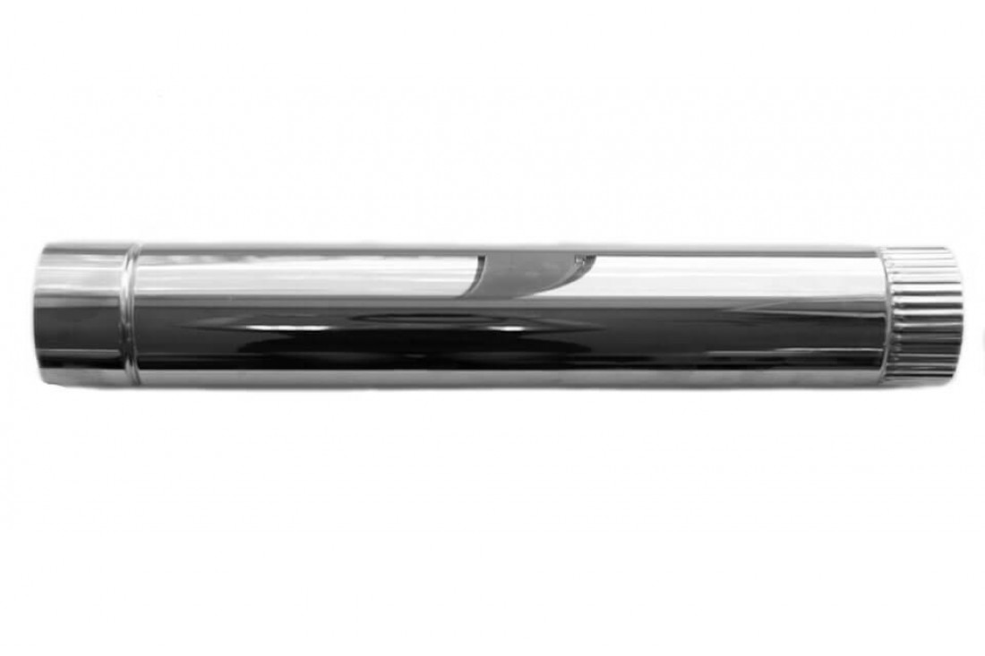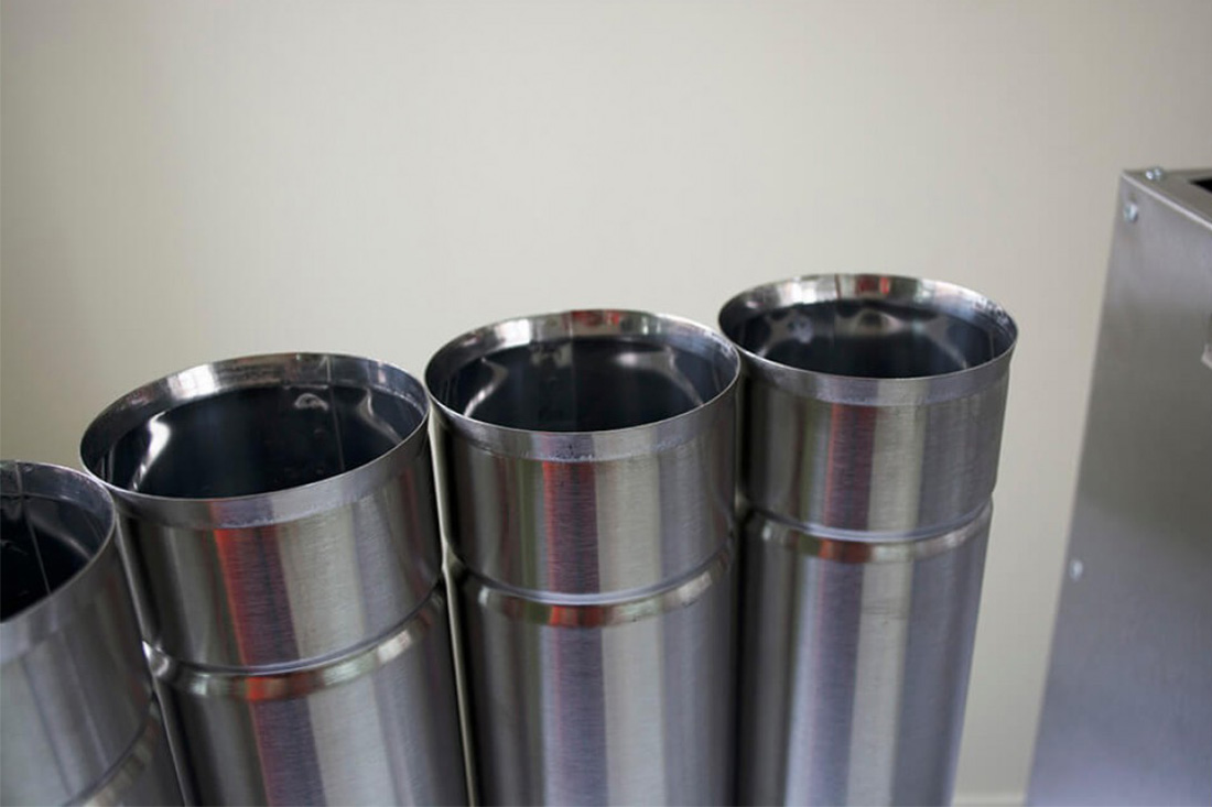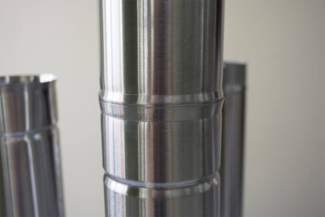 Секция трубы для печей "Берег". Изготовлены трубы из жаростойкой нержавеющей стали Aisi 430 толщиной 0,5 мм. Данная марка стали устойчива к коррозии и окислению.