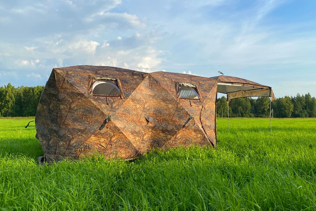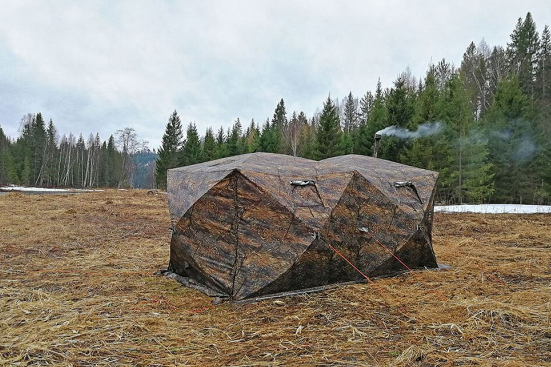 - Несколько вариантов применения. Палатка имеет универсальное применение в качестве всесезонного жилого модуля, рыболовной зимней палатки или походной бани;