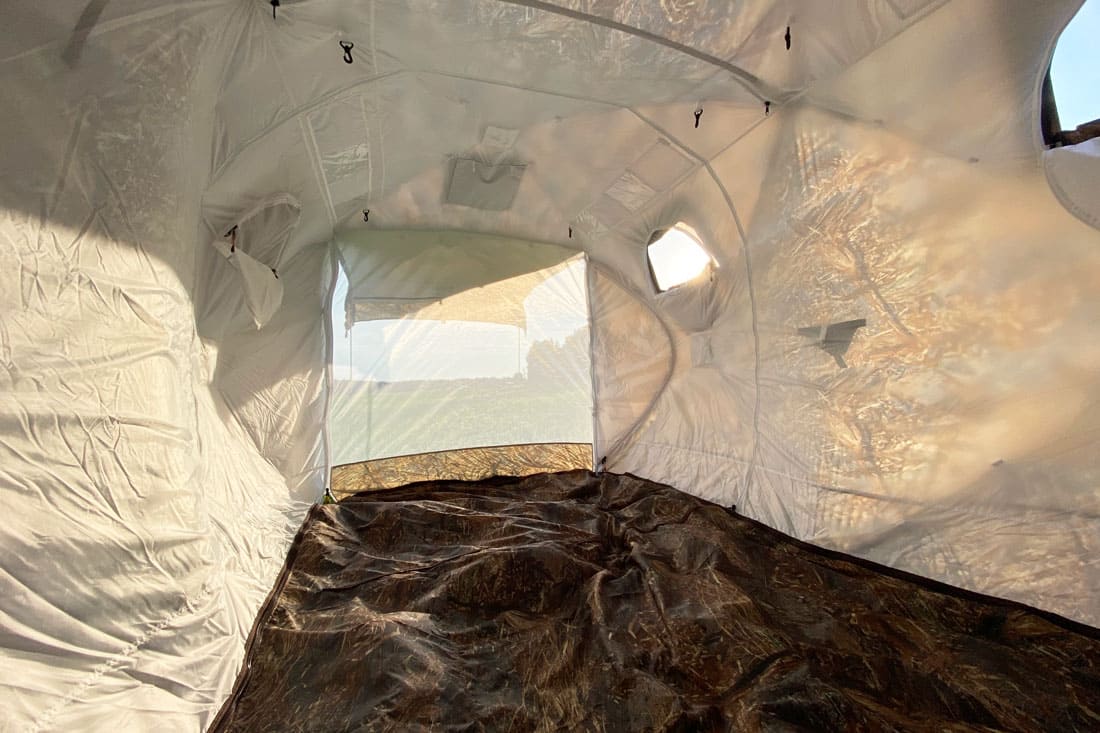 - Куб 3.60 Берег оснащен двумя разделками дымохода с металлическим кольцом 90 мм для походной печи. Отверстие для дымохода представляет собой термостойкую ткань с металлическим кольцом. Кольцо обеспечивает фиксацию трубы дымохода, а также предотвращает повреждение тента палатки. Разделка дублируется на обоих слоях. При использовании палатки Кубоид 3.60 без печи, отверстие для дымохода закрывается защитным клапаном на липе с наружной стороны;