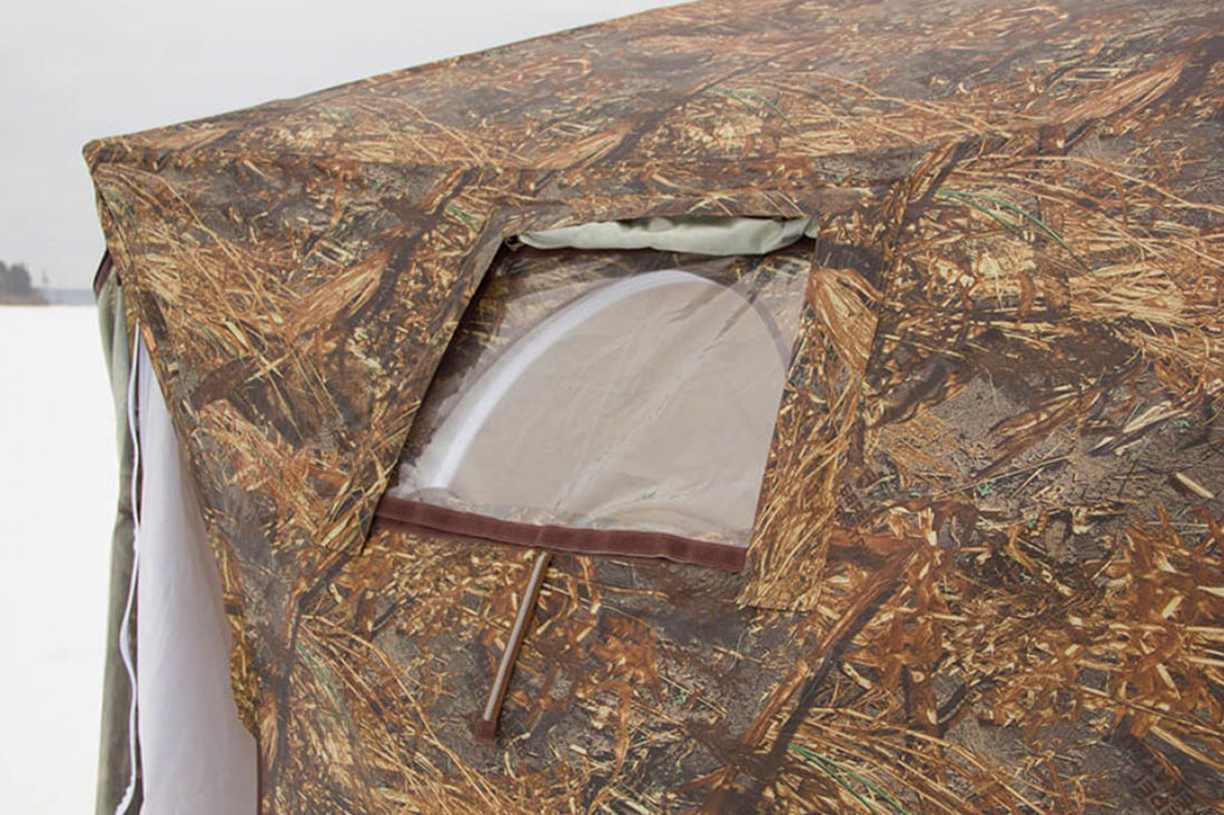 - Четыре многослойных окна Кубоида 3.60 расположены на боковых стенах, по 2 на каждой стороне. Окно защищено влагозащитным кантом по верху и торцам. Полностью закрывается клапаном на липучке. Подпорка в нижней части позволяет проветривать помещение во время осадков. В стандартной комплектации поставляются оконные заполнения на липе из прозрачной морозостойкой силиконовой пленки (гарантированная температура применения до -50°);