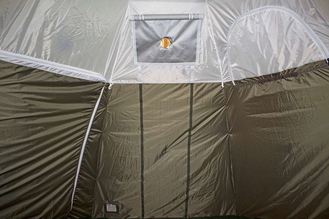Внутренний тент палатки МФП-4 выполнен из ткани Оксфорд 210 DEN с влагоотталкивающей пропиткой PU 2000 мм. Наличие внутреннего тента обеспечивает правильную терморегуляцию в летний и зимний периоды.