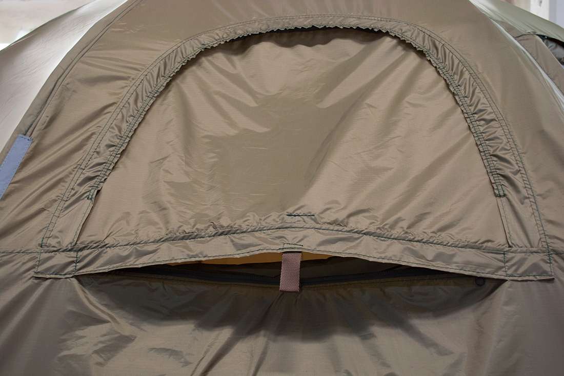 Дополнительный приток воздуха, при использовании походной печи, обеспечивается вентиляционным окном в нижней части палатки.