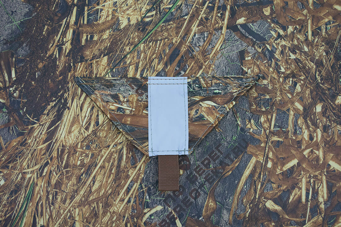 Внешний тент соединен с каркасом надежными липами из морозостойкого ПВХ. Такие липы имеют достаточно широкий размер и находятся в местах сгибов, предотвращая складывание дуг, а также защищая тент палатки от механических повреждений.