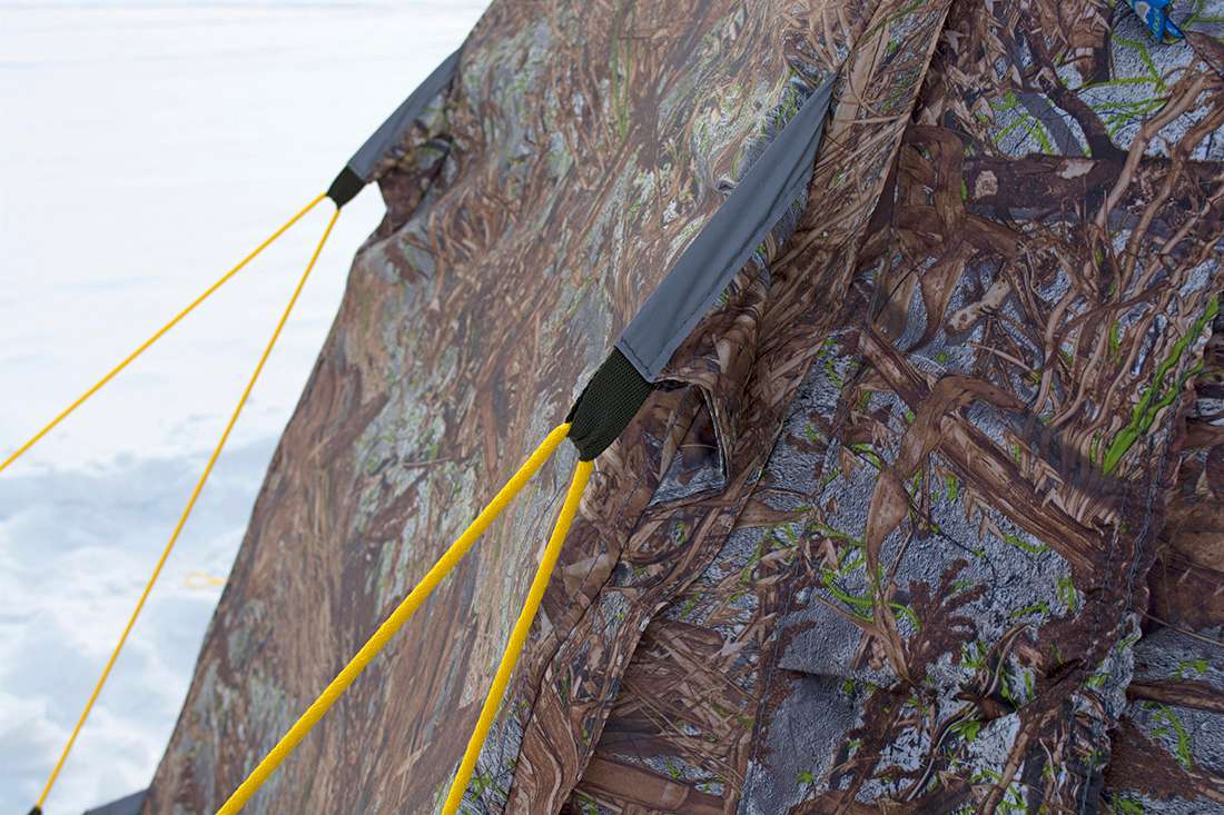 - 8 опорных дуг обеспечивают устойчивость при установке на открытой местности (в степи или на зимней рыбалке).