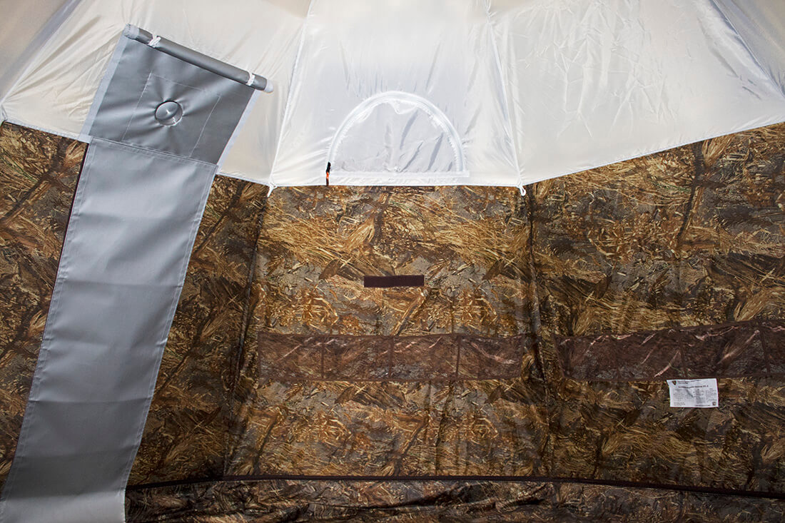 В осенне-зимний период мы рекомендуем использовать трехслойное утепленное дно с конструкцией "сэндвич" из фольги и утеплителя. Утепленное дно для УП-5 полностью изолирует влагу, а также способствует сохранению тепла в палатке. Уложить дно можно двумя способами: расстелить под палаткой или вложить его внутрь.