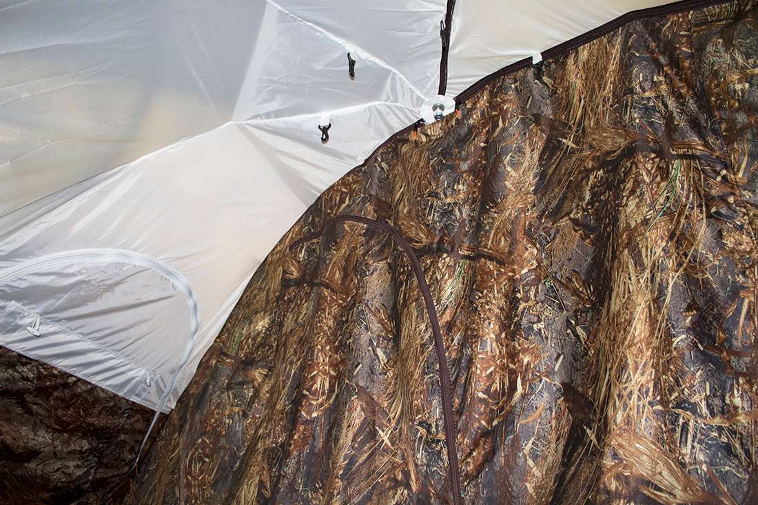 Внутренний тент дублирует все элементы палатки, оснащен дном на молнии. Изготовлен из ткани Оксфорд, предупреждает образование конденсата, а также формирует воздушную прослойку между слоями, которая надежно удерживает тепло.