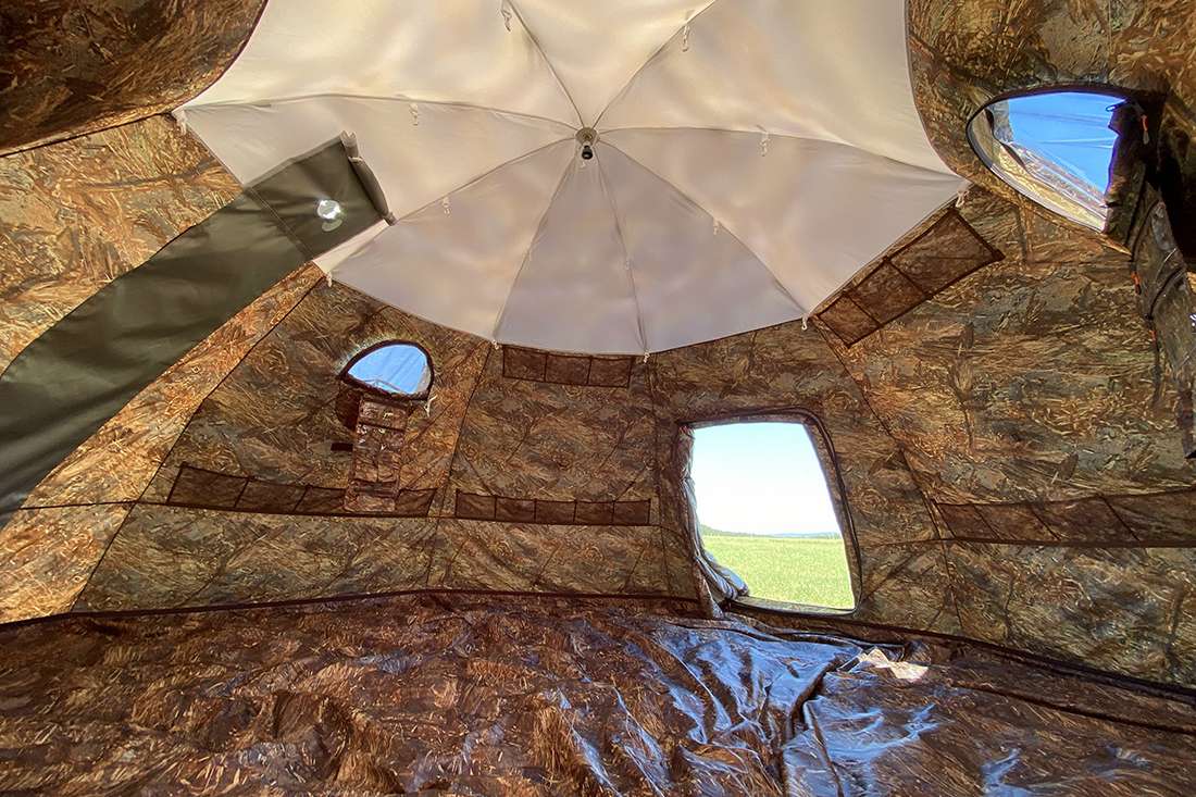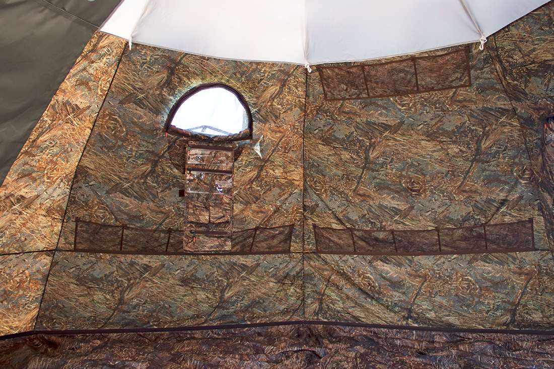 Внутренний тент оборудован съемным полом из ткани Оксфорд на молнии. Он пристегивается на 10 см выше земли, что предотвращает замерзание и попадание осадков и грязи.