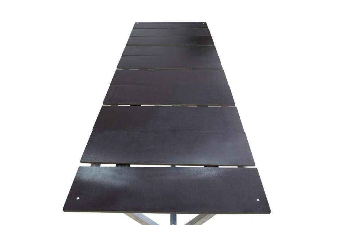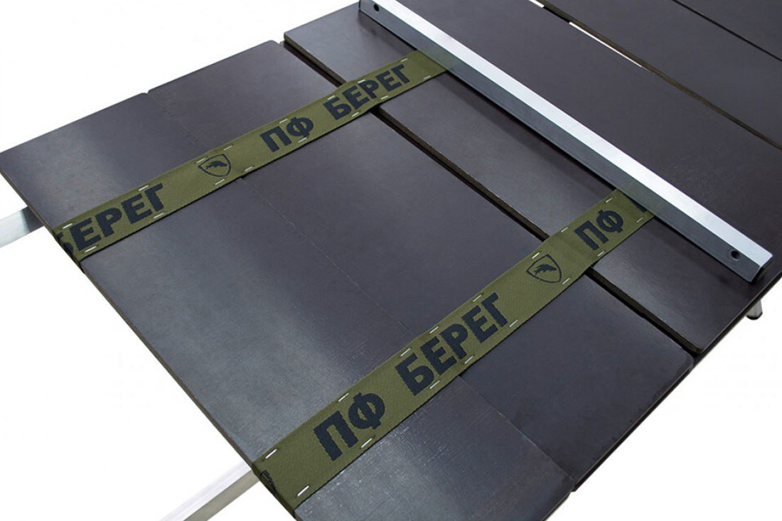 Столешница складного полока для бани состоит из 10 соединенных между собой плит размером 62 х 18 см. За счет ламинированного покрытия плит, столешница не расслаивается и подойдет для использования в помещениях с повышенной влажностью, например, в походной бане. За счет усиления каркаса горизонтальной распоркой складной полок выдерживает статическую нагрузку до 120 кг. Удобство транспортировки достигается за счет складной конструкции и специальной сумки-чехла.