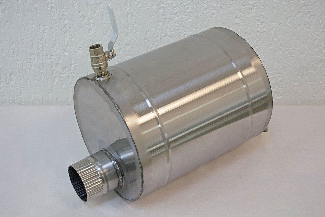 Навесной бак объемом 7 литров используется совместно с дровяными печами диаметр дымохода которых, составляет 65 мм. Предназначен для нагрева воды в полевых условиях. Навесной бак незаменимый аксессуар при использовании печи в зимней палатке или походной бане. Изготовлен из нержавеющей стали AISI 430 толщиной 1 мм.