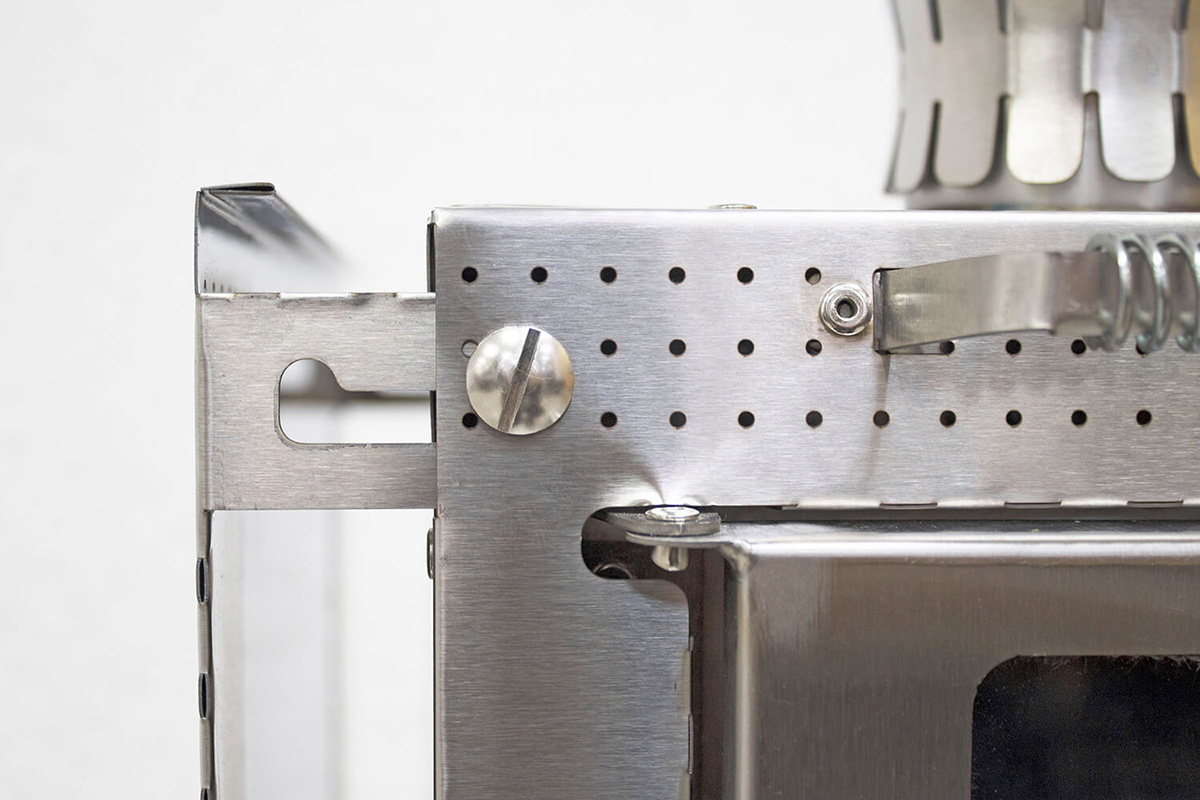 Искрогаситель. Корпус печи имеет две камеры сгорания, разделенные искрогасителем. Эффективность печи увеличивается, а палатка защищена от вылетающих искр.