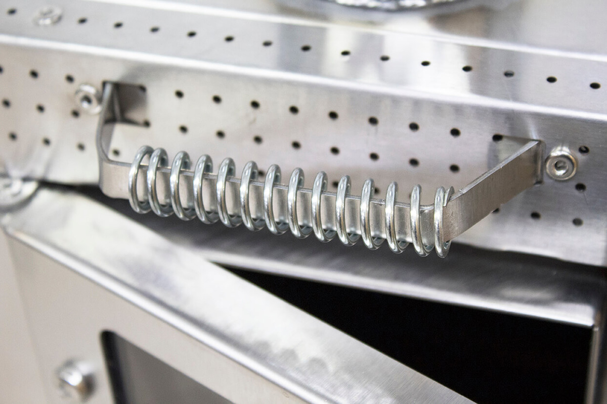 Ручки с пружинами. Если перчаток нет под рукой, вы можете безопасно открыть работающую печь. Ручки дверцы изготовлены из металлической пружины, которая не перегревается.