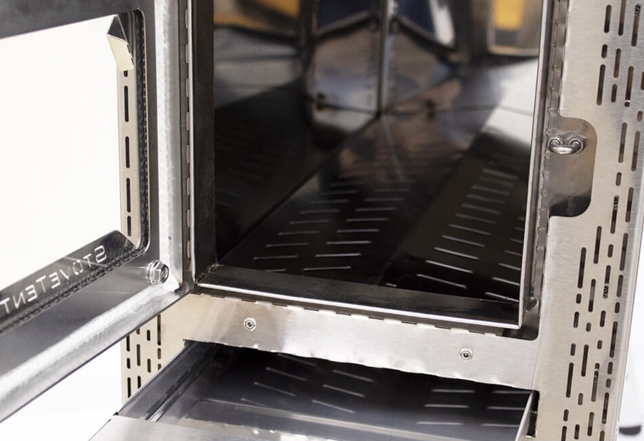Детали: аргонная сварка, усиление корпуса в зоне плиты, надежный замок топочной дверки.