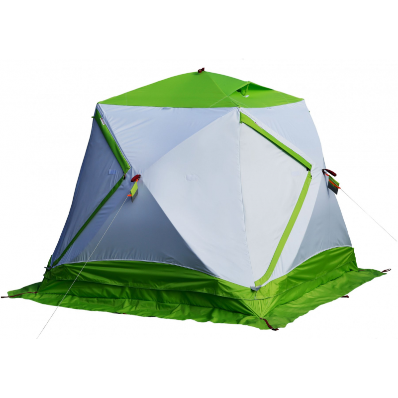 Лотос Куб 3 Компакт Термо – полуавтоматическая палатка куб для зимней рыбалки не имеющая аналогов в категории зимних палаток куб по компактности сложения, системе теплоизоляции тента, способу гидроизоляции днища, а также по системе защиты палаточного укрытия от дождя.