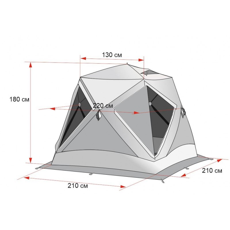 Оптимальное соотношение пропорций конструкции. Высота палатки 180 см при ширине дна 210 х 210 см;