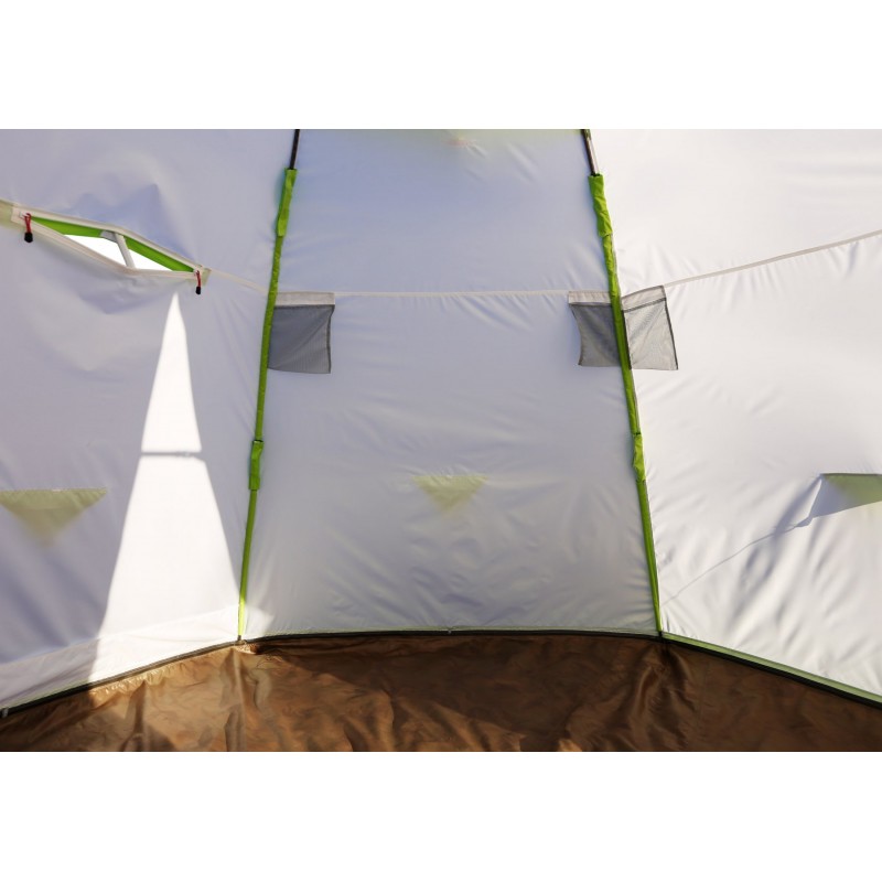 - В стенки встроены, защищённые клапанами на замках – молниях смотровые окошки. Прозрачность окошек достаточна для полноценной визуализации внешней среды и обстановки. С внутренней стороны тент укомплектован множеством карманов для вещей и удил.