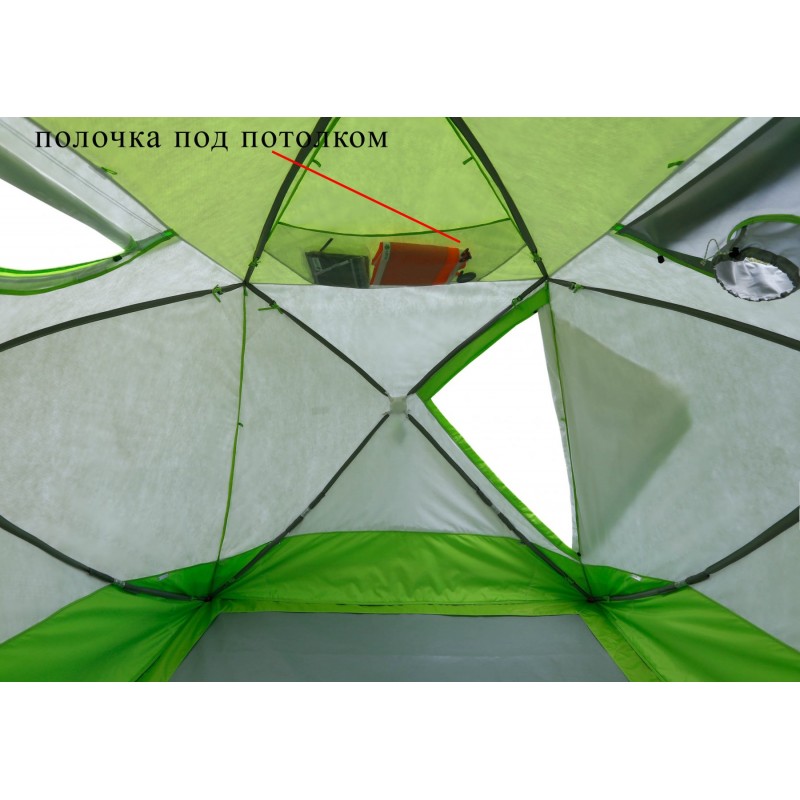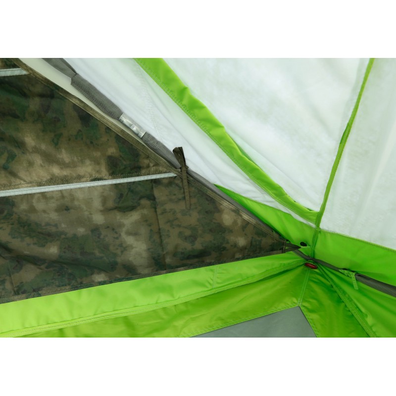 К тому же палатка оснащена запатентованным навесом, который характеризуется повышенным показателем теплоизоляционности и выносливости.