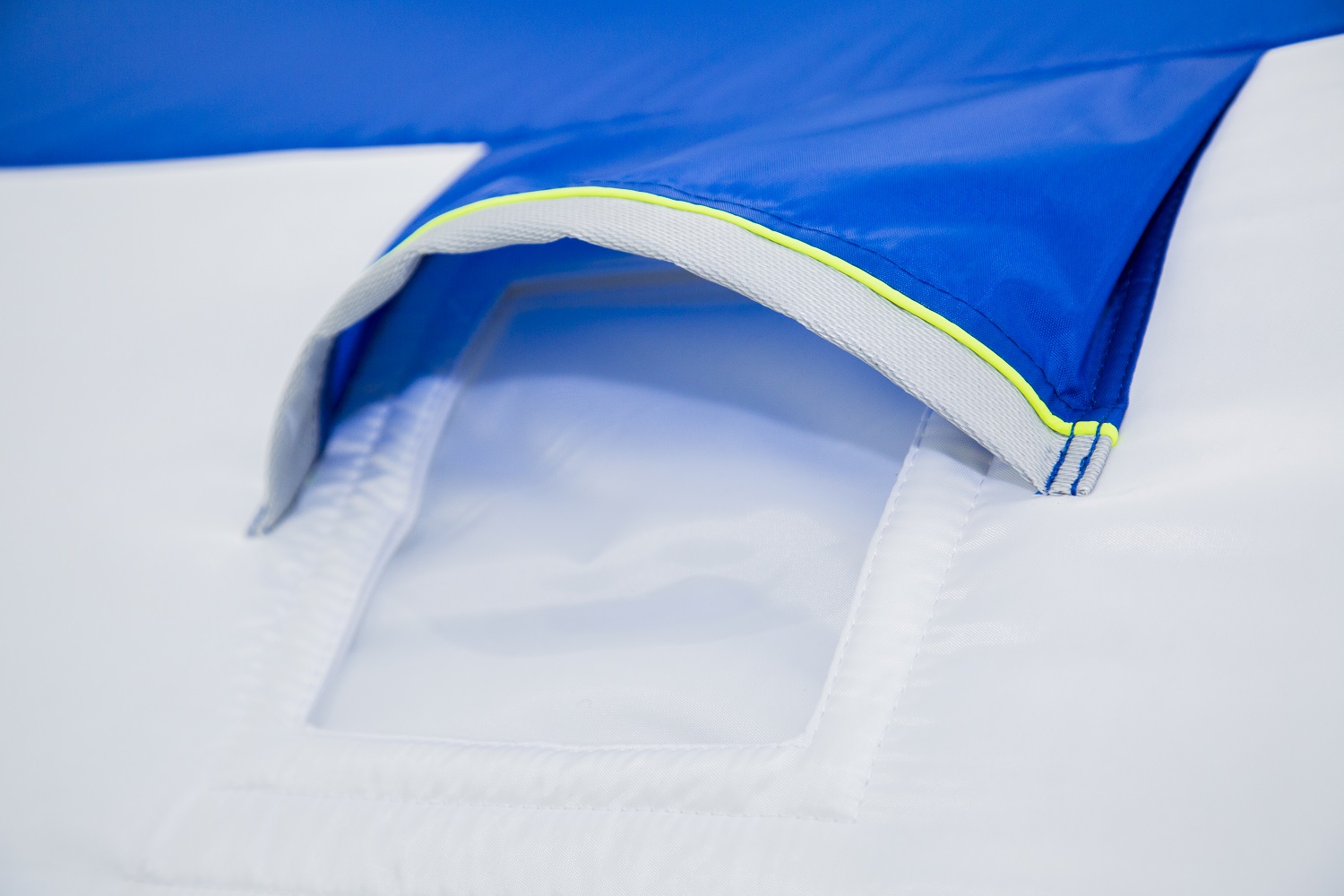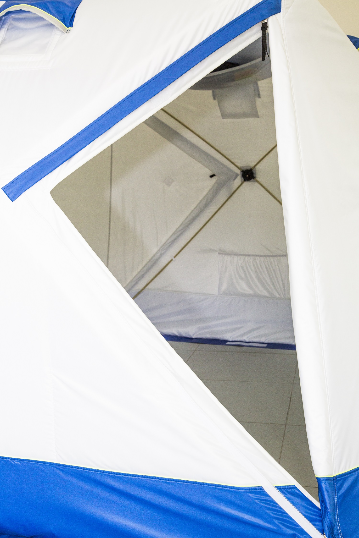 - Надежный трехслойный тент с воздушной прослойкой без дополнительной стежки и клея, что обеспечивает высокую сохранность тепла внутри палатки;