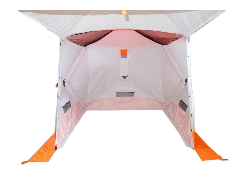 Всесезонная палатка Призма Шелтерс Премиум (2-сл.) имеет форму куба, что позволяет рыбакам рационально использовать пространство. Сверлить лунки теперь можно прямо в установленной палатке. Габариты ПРИЗМЫ позволяют делать это без каких-либо неудобств. В отличие от классических палаток ПИНГВИН™, палатка ПРИЗМА более ветроустойчива. Благодаря своей конструкции палатка выдерживает порывистый ветер. Легко ставится одним человеком в любую погоду. Тент выполнен из ткани Оксфорд 240, которая выдерживает столб воды не менее 2000 мл. Также Шелтерс можно использовать как зимой, так и летом. За 30 секунд, путем открытия двух молний, одна сторона палатки поднимается и становится крышей. Палатка превращается в укрытие для летней рыбалки ШЕЛТЕРС. Установив палатку на берегу водоема, вы находитесь в укрытии и в то же время имеете открытый доступ к воде и абсолютно свободно работаете со снастями. В то же время вещи, прикормка, насадка, снасти - всё находится рядом в укрытии. ПРИЗМА ШЕЛТЕРС прошла тестовые испытания на водоемах Урала и вызвала огромный интерес и популярность! Призма Шелтерс Премиум (2-сл.) имеет увеличенные размеры. Теперь в ней могут свободно разместиться четыре человека и комфортно рыбачить как днем, так и ночью! Для удобства сделано два входа. Входы сделаны не по диагонали, как принято на всех импортных аналогах, а напротив друг друга, что позволило оптимизировать внутреннее пространство, открывающая сторона находится напротив дверей. Входы выполнены в угловом варианте и снабжены застежкой – липучкой. Так же входы снабжены специальной зимней молнией, которая снаружи имеет защитную планку, предотвращающую от замерзания. Палатка выполнена в светлых тонах и имеет яркую крышу и пороги, а так же светоотражающие элементы по периметру, что позволяет увидеть палатку в ночное время. На наружной юбке имеются оттяжки для крепления порогов при отсутствии снега. На наружной юбке имеются оттяжки для крепления порогов при отсутствии снега. Внутренне пространство тоже стало намного удобнее. Сверху в тенте установлены 2 кармана-сетки для легких вещей, в дополнение к четырем сдвоенным карманам по периметру, 2 форточки, выполненных с применением прозрачной морозостойкой ПВХ-пленки (полностью съёмные). В наружном тенте имеется форточка, изготовленная с применением морозостойкой прозрачной ПВХ-пленки на контактной ленте (полностью съёмные). Внутренний тент полностью изготавливается из смесовой дышащей ткани СТ-1, что позволяет отводить из палатки излишнюю влагу и конденсат. Во внутреннем тенте имеется форточка на молнии и контактной ленте, три сдвоенных кармана с сеткой в нижней части тента и 2 потолочных кармана-сетки. Внутренний тент прикрепляется с помощью вязок и клевант к наружному тенту, таким образом, между тентами образуется воздушная прослойка, что является самым лучшим теплосберегающим элементом. Внутренний тент, в отличие от импортных аналогов, имеет белый цвет, что гораздо приятнее и практичнее, и в пасмурную погоду и ночью в палатке светло и комфортно, и требуется во много меньше освещения для ночной ловли. Удобный фирменный чехол позволяет свободно уложить после рыбалки даже обмерзшее укрытие! Обратите внимание, что укрытие не обладает дышащими свойствами. Для циркуляции воздуха внутри палатки рекомендуем использовать ф