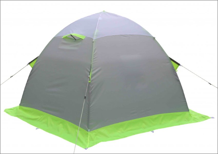Палатка предназначена для использования в зимнее время года и способна выдерживать температурные показатели до -50 градусов благодаря некоторым конструктивным особенностям: