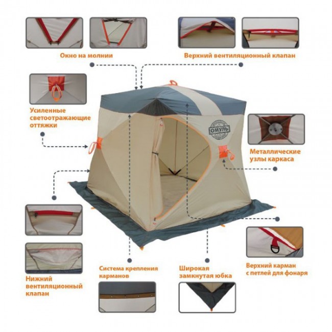 Отличительные особенности палатки для зимней рыбалки Омуль Куб-2: