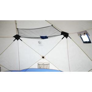 4.При креплении палатки на льду распределять растяжки симметрично по всему периметру, что поможет избежать перекоса и чрезмерной нагрузки на молнию входной двери.