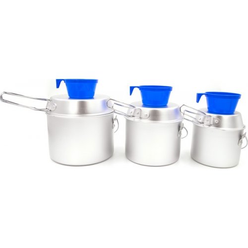 Набор посуды из алюминия со складными ручками. Этот набор сделает готовку приятнее и в кемпинге и на рыбалке. Пригодится каждому туристу!