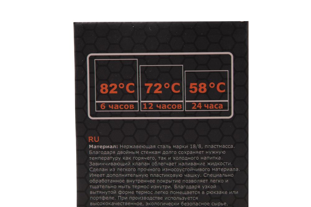 Благодаря узкой вытянутой форме термос легко помещается в рюкзаке или портфеле