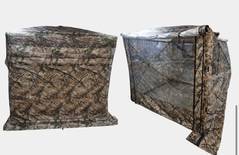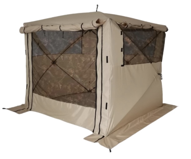 •Большие окна из москитной сетки расцветки камуфляж, с защитными клапанами от дождя из ткани;